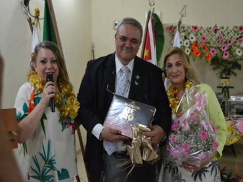 A companheira também apresentou as diversas ações realizadas pelo clube e pelo Rotaract apadrinhado pelo clube, que muito tem feito junto à comunidade. Coube uma homenagem ao companheiro Marcos Antônio Lucas e a companheira Sidnei Giacomelli, ambos grandes colaboradores de projetos realizados pelo clube.