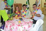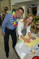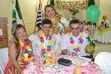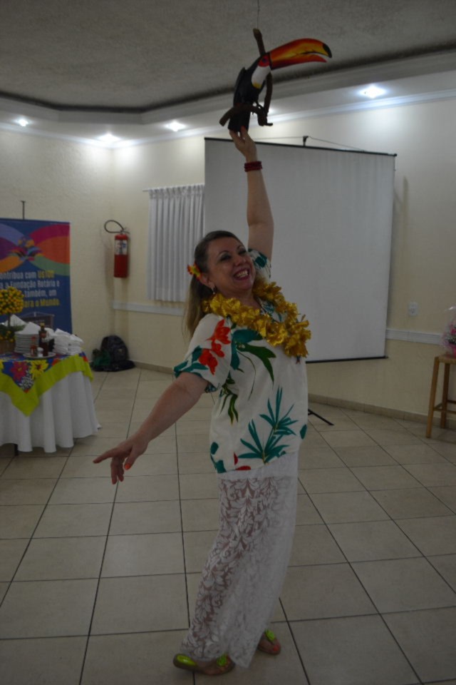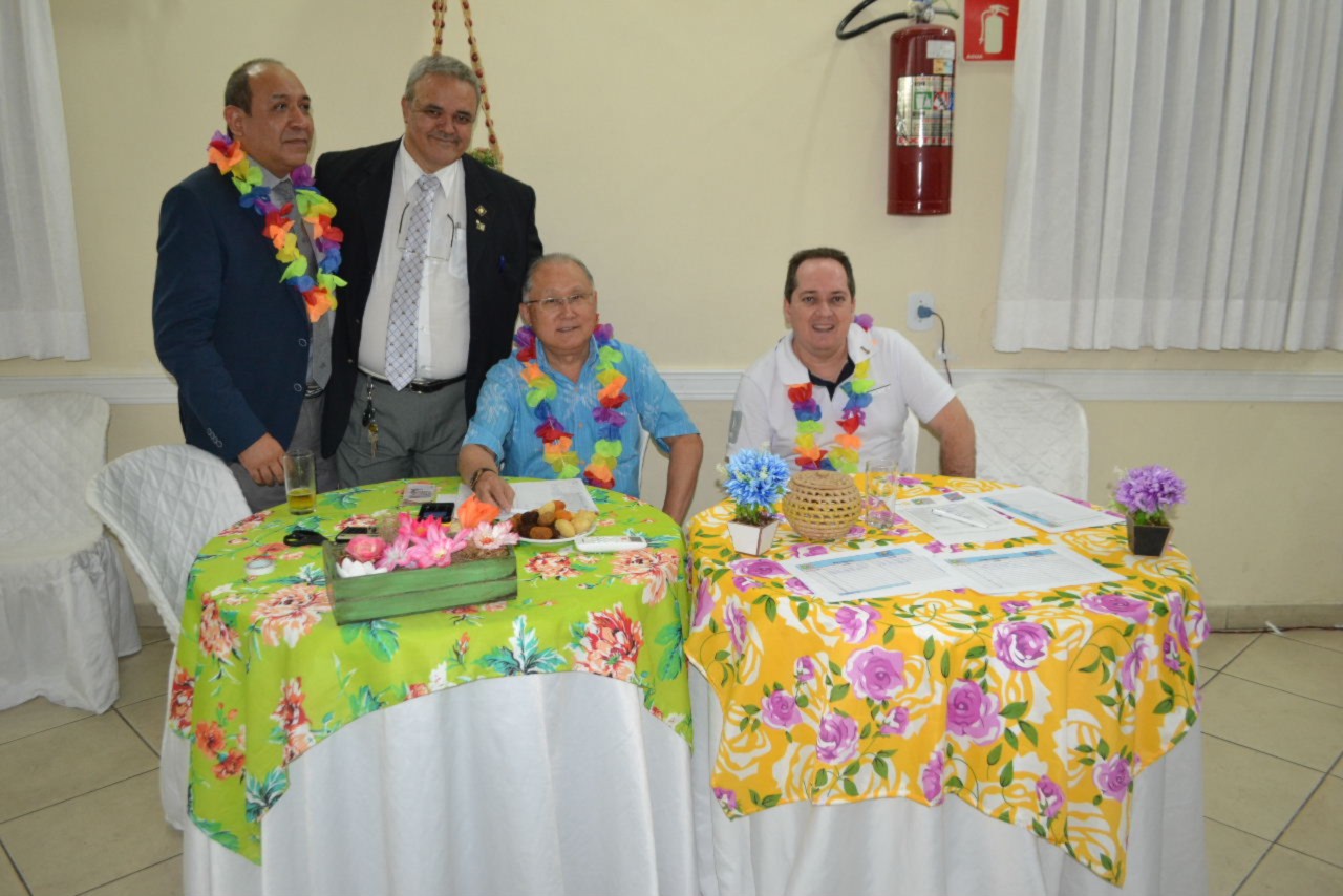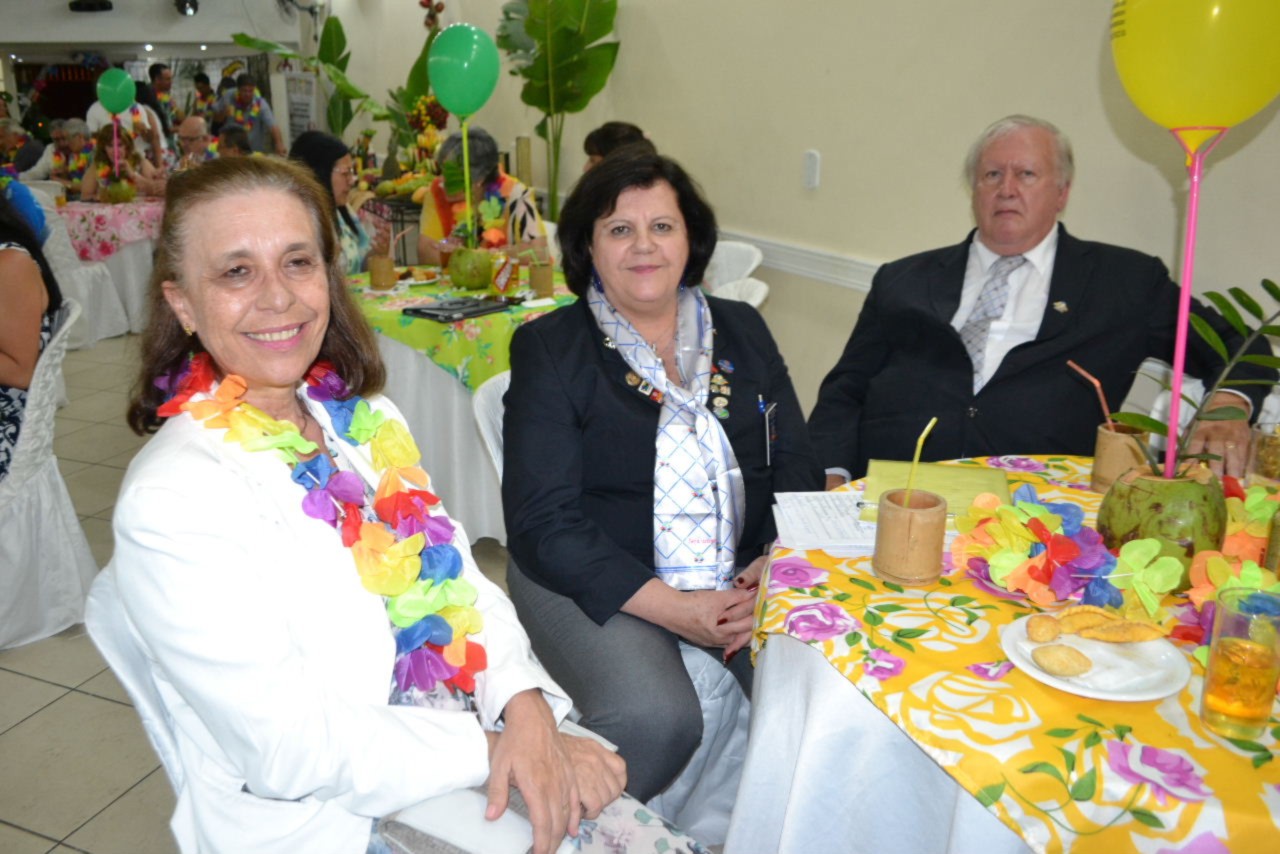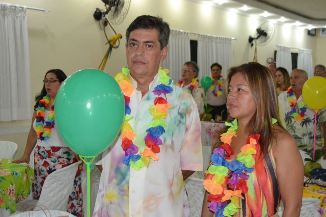 O clima festivo trouxe muita alegria desde a chegada ao Buffet Tender, todo decorado com folhagens e frutas, como um legítimo baile do Havaí, com direito a distribuição de colares floridos para todos os convidados, incluindo as autoridades rotárias que marcaram presença no evento.