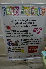 Durante a festiva, os rotaractianos promoveram a campanha Hands for Polio, ocasião em que os convidados carimbam as mãos pintadas, num tecido de algodão que será utilizado na confecção de cobertores a serem doados para pessoas carentes. Cada participante colabora com R$20,00 e com a alegria de ser solidário, deixando suas mãos fixadas no tecido que confeccionará a grande ação dos rotaractianos. A governadora Maria Luíza fez questão de apoiar a causa!