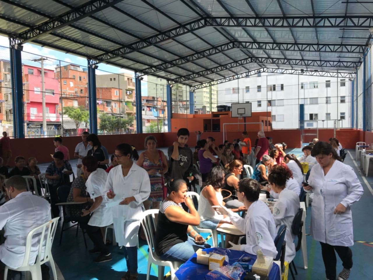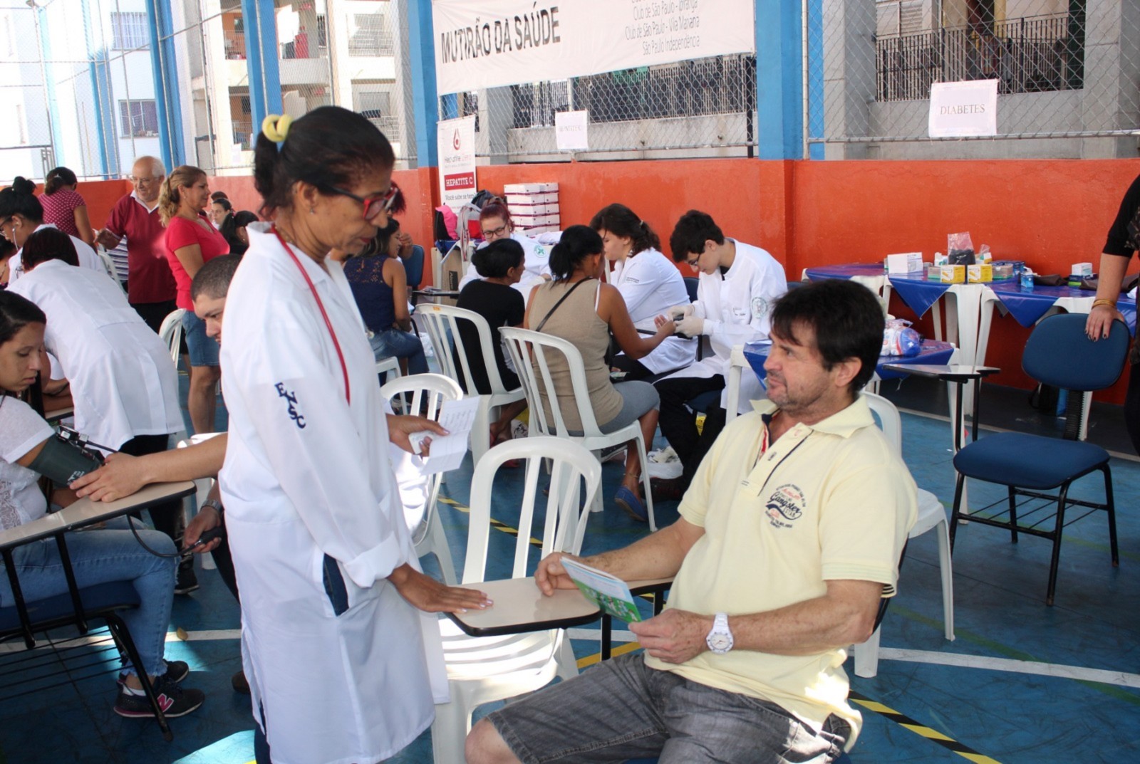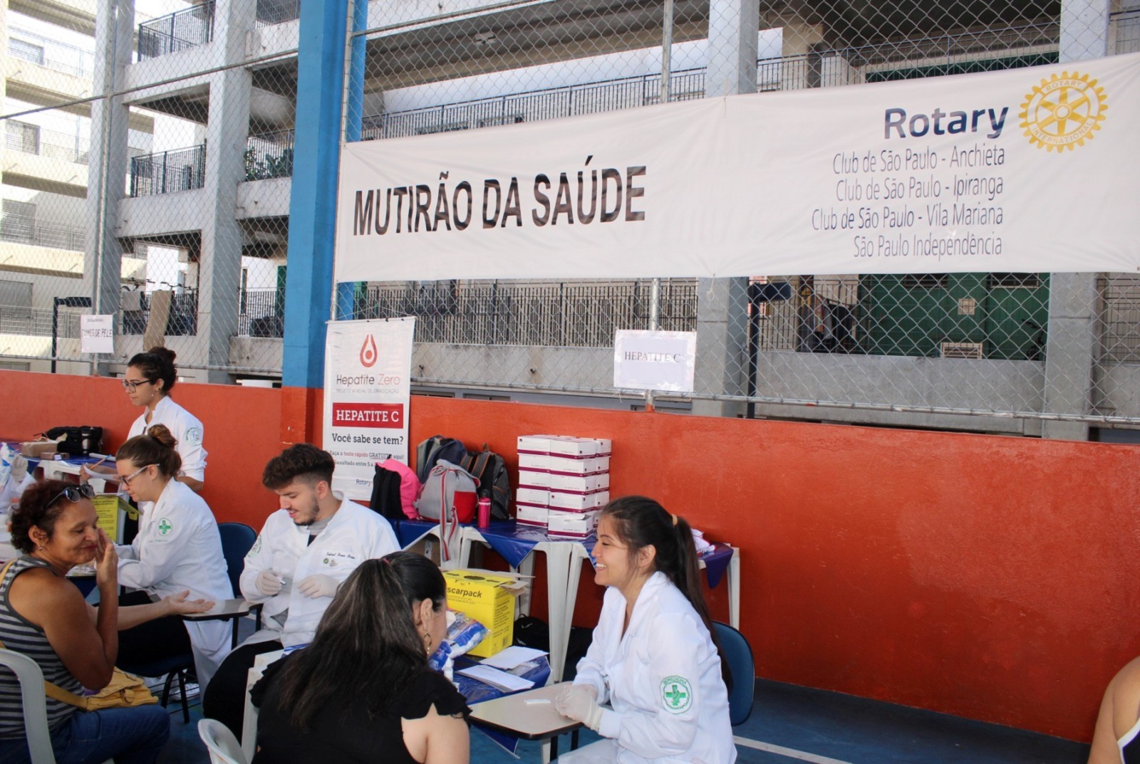 Cerca de 100 voluntários divididos entre a ONG Verter (Grupo H. Olhos), ONG Renovatio, UNICID (Universidade Cidade de São Paulo), Faculdade de Ciências Médicas da Santa Casa de São Paulo e Associação Pele Saudável realizaram os atendimentos. Os kits utilizados nos testes de diabetes foram doados pelo Hospital São Camilo Ipiranga e Cruz Vermelha, já os kits de hepatite C, foram fornecidos pela ABPH (Associação Brasileira dos Portadores de Hepatite).