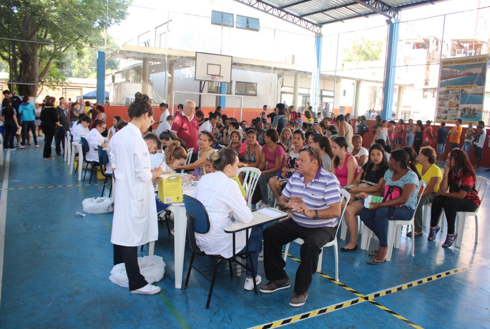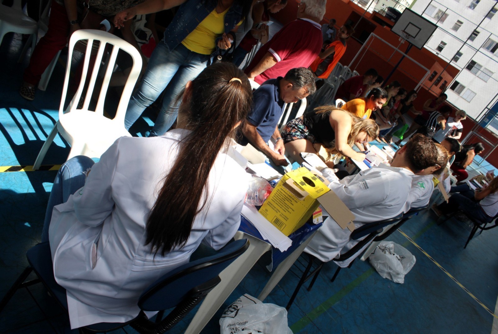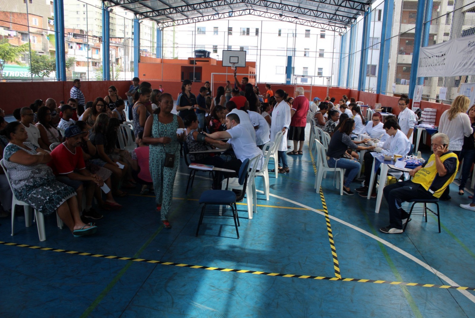 Cerca de 100 voluntários divididos entre a ONG Verter (Grupo H. Olhos), ONG Renovatio, UNICID (Universidade Cidade de São Paulo), Faculdade de Ciências Médicas da Santa Casa de São Paulo e Associação Pele Saudável realizaram os atendimentos. Os kits utilizados nos testes de diabetes foram doados pelo Hospital São Camilo Ipiranga e Cruz Vermelha, já os kits de hepatite C, foram fornecidos pela ABPH (Associação Brasileira dos Portadores de Hepatite).