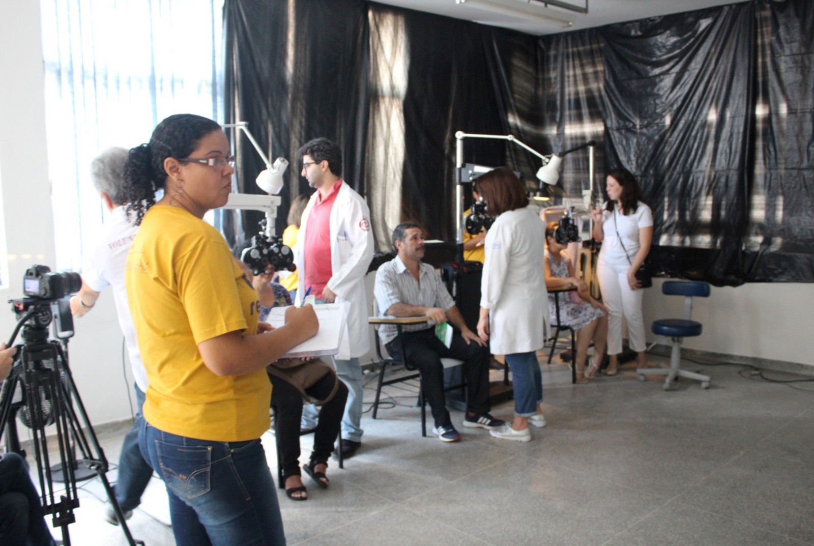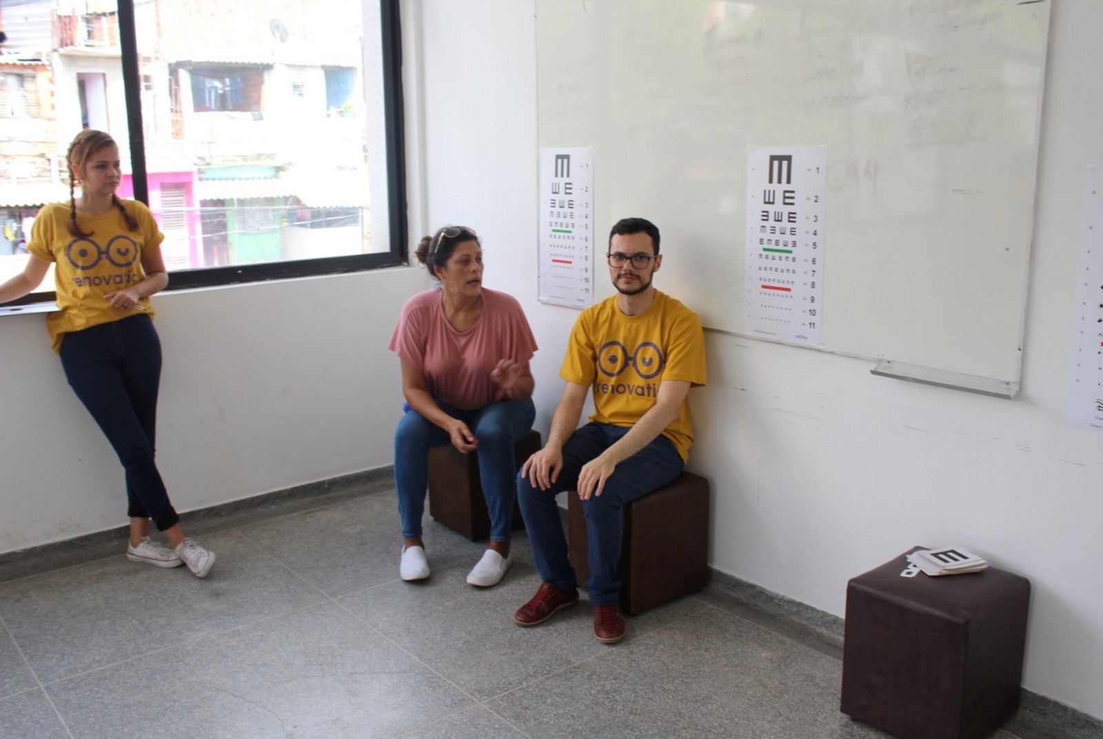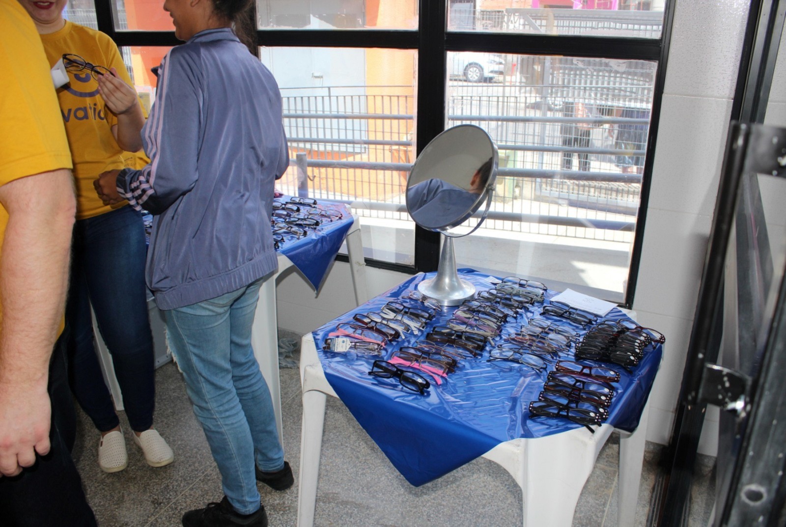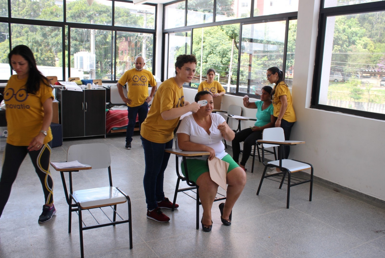o paciente passa pela triagem, consulta com o oftalmologista e já vai para casa enxergando com os novos óculos doados, revela Josef Slusny. As peças são fabricadas em partes pela ONG alemã OneDollarGlasses, que tem a Renovatio como representante brasileira. É ótimo para nós que não temos condições. Só a lente da minha filha custa cerca de 300 reais, revela Kelly Lourenço Ramalho Moreira. Segundo ela, a Beatriz de 12 anos, possui deficiência física e psicológica devido à má formação cerebral em seu nascimento. A Bia faz tratamento pela AACD, mas como eu perdi o prazo, não consegui receber a armação por lá. Esse mutirão caiu do céu, declara.