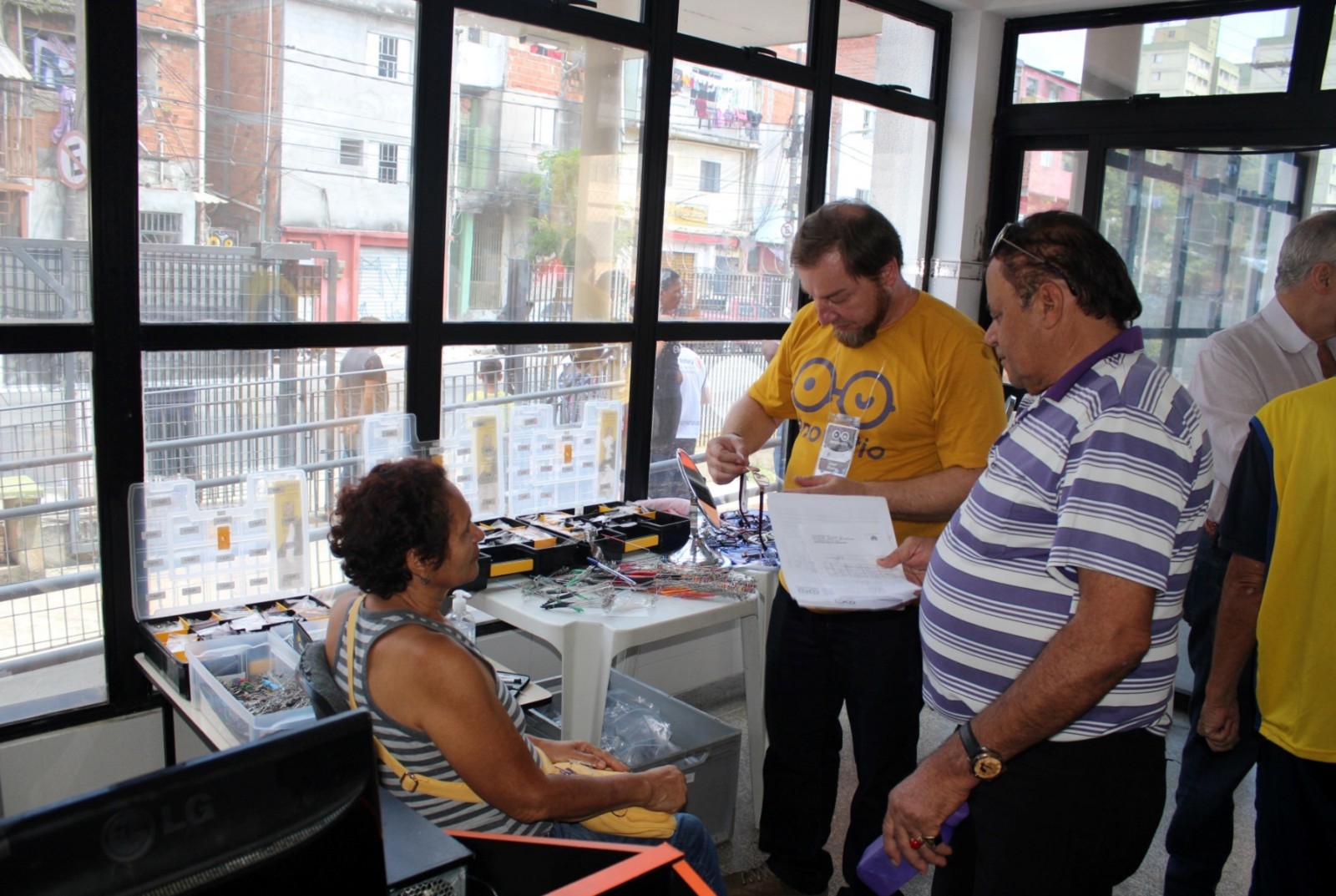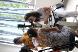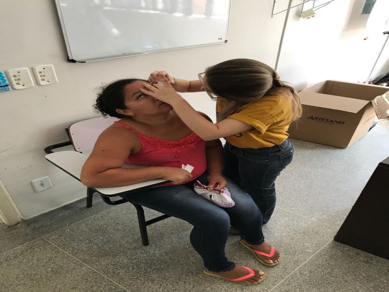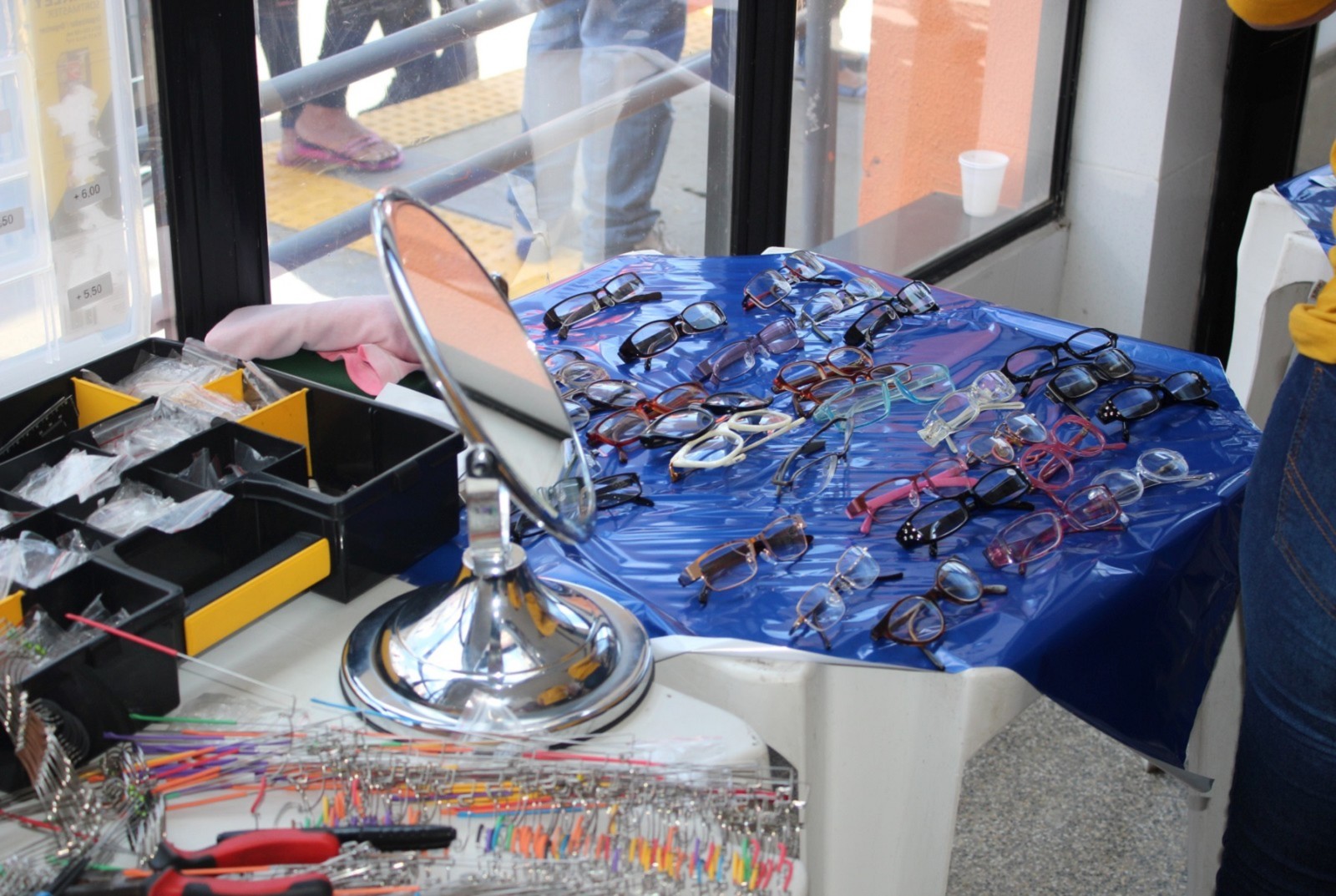 o paciente passa pela triagem, consulta com o oftalmologista e já vai para casa enxergando com os novos óculos doados, revela Josef Slusny. As peças são fabricadas em partes pela ONG alemã OneDollarGlasses, que tem a Renovatio como representante brasileira. É ótimo para nós que não temos condições. Só a lente da minha filha custa cerca de 300 reais, revela Kelly Lourenço Ramalho Moreira. Segundo ela, a Beatriz de 12 anos, possui deficiência física e psicológica devido à má formação cerebral em seu nascimento. A Bia faz tratamento pela AACD, mas como eu perdi o prazo, não consegui receber a armação por lá. Esse mutirão caiu do céu, declara.